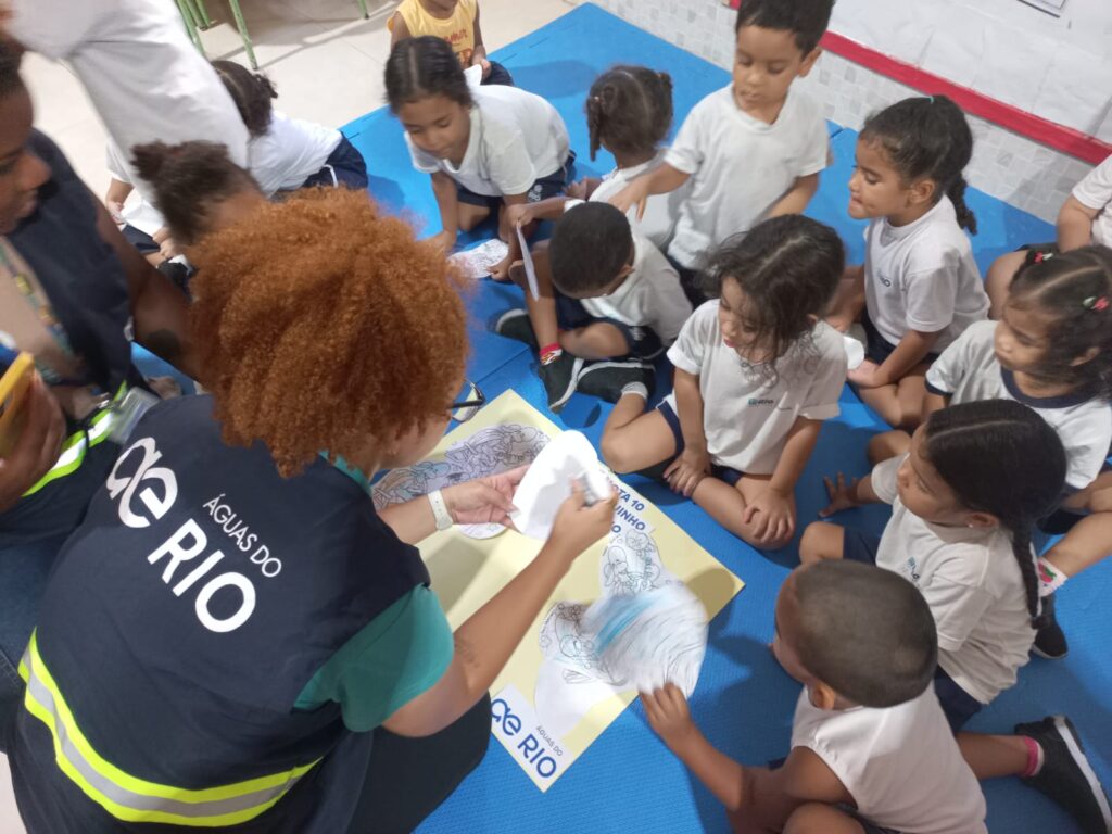 Para transformar um tema abstrato em algo compreensível para bebês e crianças pequenas, a escola estruturou uma série de atividades práticas e lúdicas. Entre elas, estão as estações de exploração da água, onde os alunos podem tocar, sentir a temperatura e observar objetos que boiam ou afundam. “A ideia é associar a água a algo precioso, que precisa ser cuidado desde cedo”, destaca a diretora.