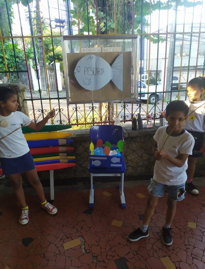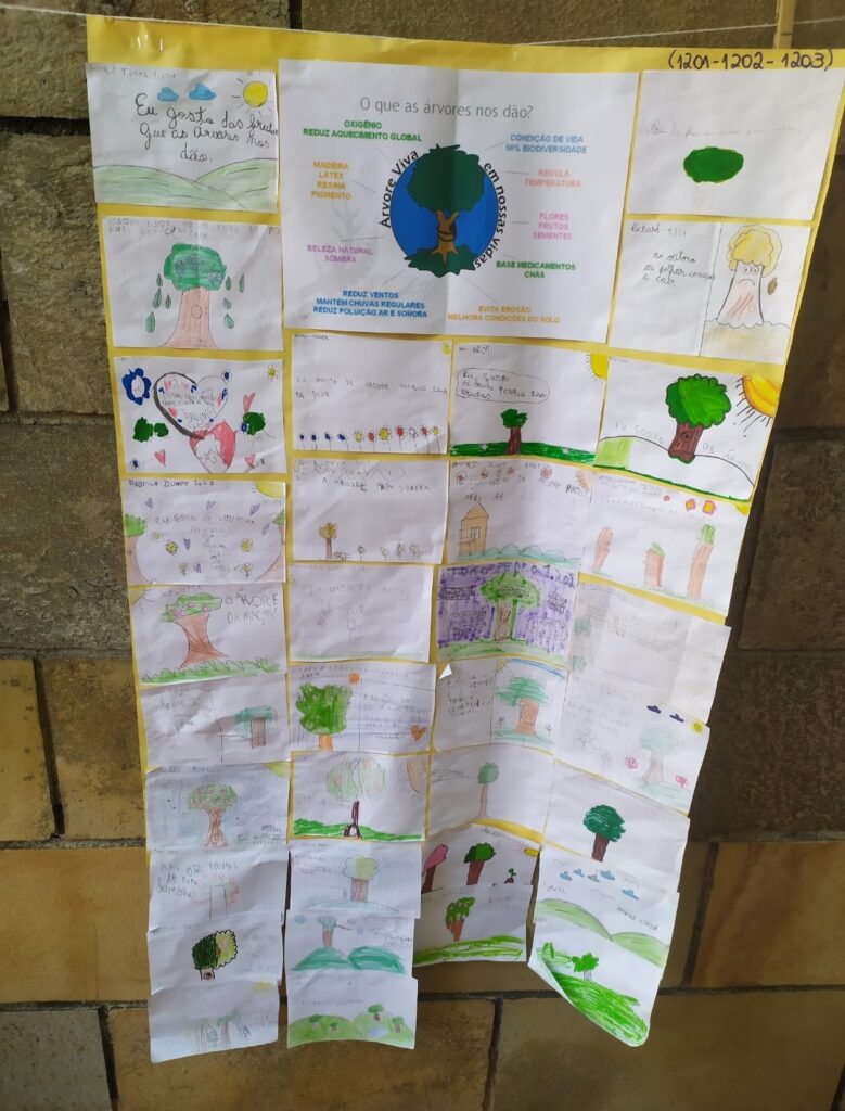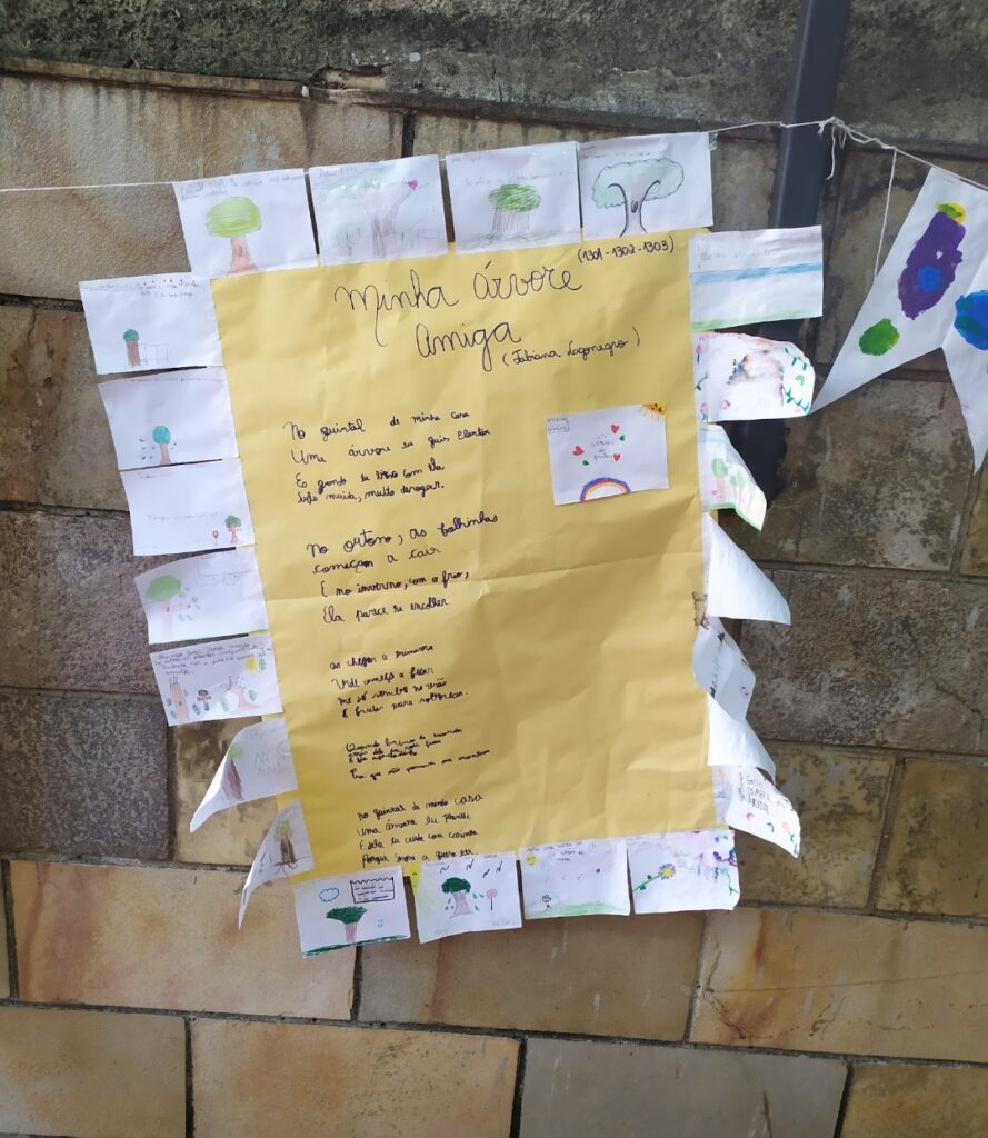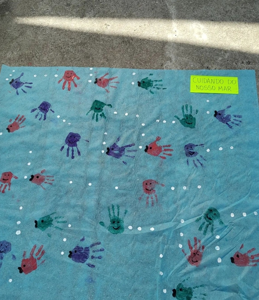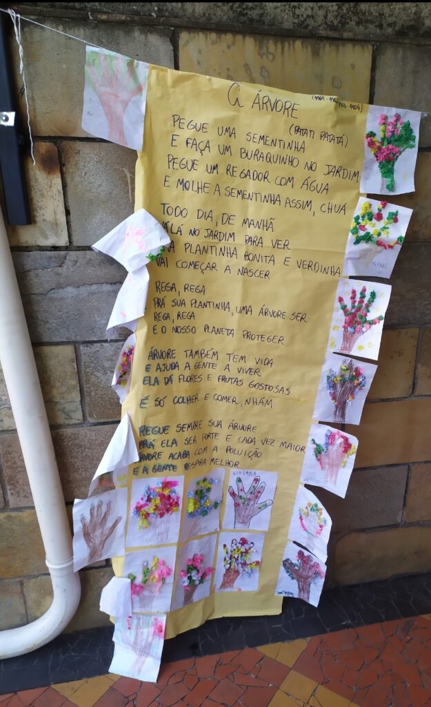 As atividades iniciaram com uma pesquisa de campo feita pela professora Rebeca, juntamente com dois alunos do primeiro ano da turma 1103: Bento Barbosa e Nathan Cassoma, e a mãe representante do CEC, que foi ao rio Tindiba, localizado na Rua Albano, perto da nossa escola. Analisamos o rio e seu entorno, que possui uma pracinha para crianças. Os alunos alertaram, em um vídeo transmitido a toda a comunidade escolar, sobre a importância do cuidado com as águas, especialmente a preservação delas. Depois disso, discutimos com os alunos do primeiro ano como poderíamos fazer a nossa parte e levantamos a hipótese: se existisse um super-herói, como ele seria? Após esse estímulo, o aluno Nathan Cassoma pediu um papel e desenhou seu super-herói. No verso, ele criou uma história em quadrinhos (HQ) contando como o super-herói surgiu: um aluno entrou no laboratório da escola e colocou os quatro elementos da terra em uma máquina para se tornar o Capitão Limpeza, que nos ajudará a salvar o planeta. Com o desenho em mãos, procuramos a secretária escolar, que é artesã, para confeccionar o Capitão Limpeza em formato de boneco. O Capitão Limpeza foi apresentado à comunidade escolar em uma peça de teatro intitulada ‘Capitão Limpeza e o Cuidado dos Rios’, incentivando todos a cuidarem das águas e a preservarem o meio ambiente, além de pedir que não joguem lixo nas ruas. Além disso, o projeto mobilizou a comunidade escolar a arrecadar tampinhas. Os alunos do primeiro ano elaboraram vários cartazes de conscientização ambiental e decoraram a escola com flores feitas de tampinhas PET. Construímos uma parceria entre a escola e as famílias por meio desse projeto, solicitando aos responsáveis que confeccionassem, junto aos alunos, uma placa de conscientização ambiental a ser exposta na escola.
