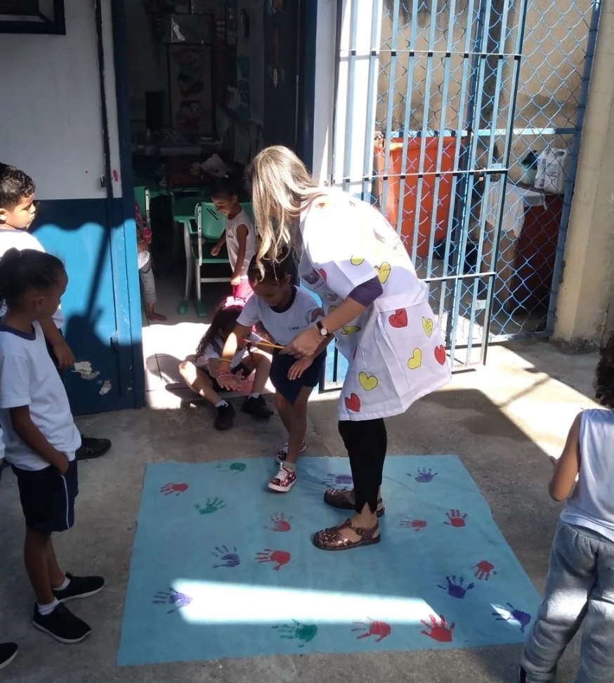 Como a turma envolvida é do 1º ano, uma estratégia utilizada foi desenvolver nos alunos a autoestima, a autoafirmação e trabalhar no contexto lúdico, sobretudo a partir de suas vivências, pois o universo do super-herói é tão vívido e presente na rotina deles. Logo, desde o início do ano em sala de aula, trabalhamos com o ‘super-aluno’, que usa uma capa quando é escolhido e ajuda em todas as questões da sala de aula, no meio ambiente escolar e até mesmo como ajudante que fiscaliza se todos estão engajados nas atividades. Visando promover nos alunos o protagonismo, a liberdade de criação e um espaço criativo onde possam se expressar sem restrições, surgiu, assim, o Capitão Limpeza, de maneira espontânea e especial. Utilizamos recursos audiovisuais, pois o universo infanto-juvenil atualmente está bastante voltado para as redes sociais, como, por exemplo, TikTok e YouTube. Logo, os alunos mais desinibidos foram escolhidos para protagonizar as criações, a confecção dos vídeos e o teatro. O que vale muito a pena é ouvir, no final, um aluno dizer: ‘Obrigada, professora, amei participar desse projeto!’