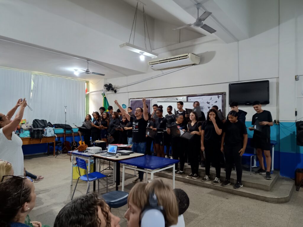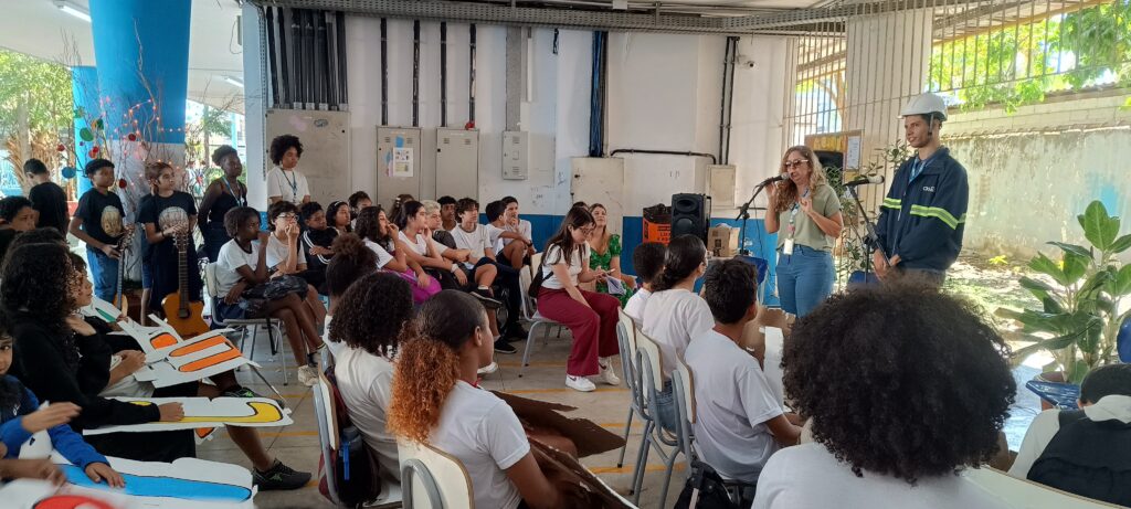 O evento encerrou-se com a apresentação do Grupo Trapiche, que cantou e tocou a música “Amar o Mar”, de composição coletiva. Os versos ecoaram pela escola como síntese do espírito do projeto: