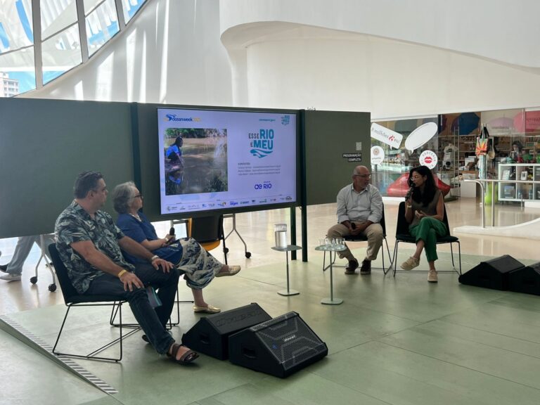 Com o mar como pano de fundo, o debate ressaltou a conexão vital entre os rios urbanos e o oceano. Silvana Gontijo destacou o papel transformador da educação e do protagonismo infantojuvenil, pilares do “Esse Rio é Meu”. “Estou muito feliz em ver os alunos da Elizer, primeira escola que nos ajudou a limpar o Rio Carioca, está aqui. É muito bonito ver vocês aqui”, celebrou.