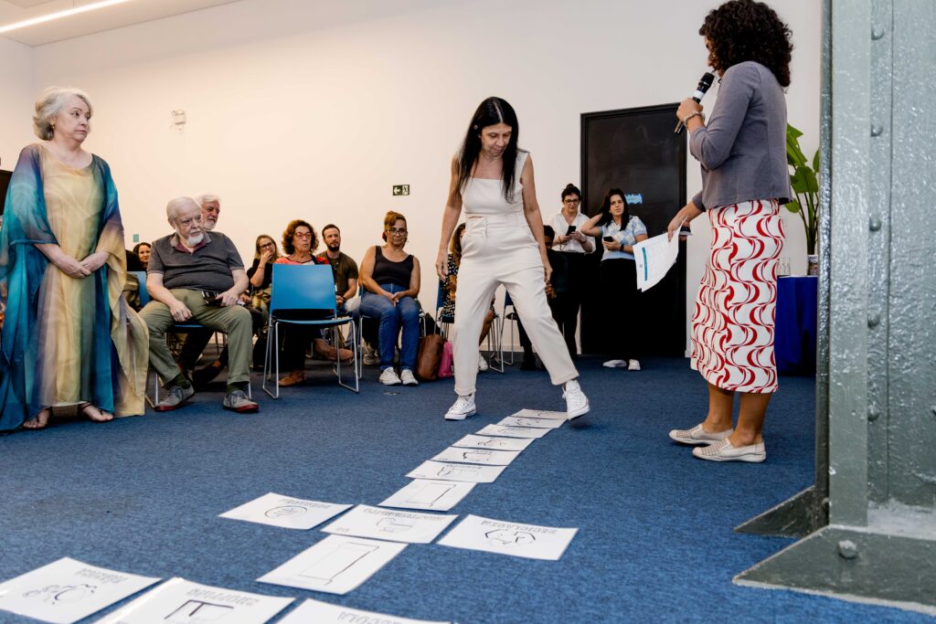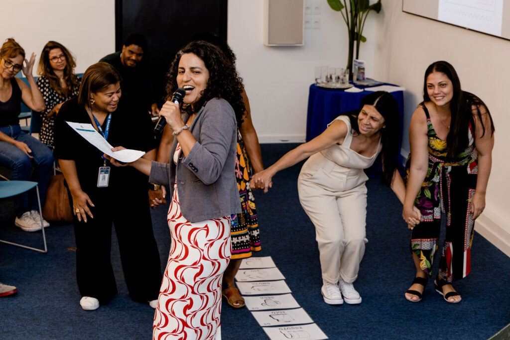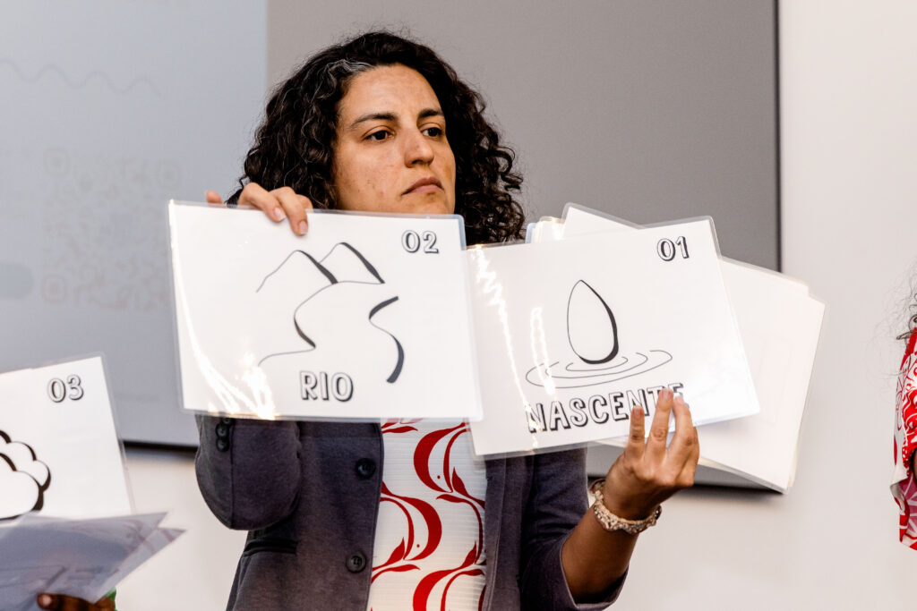 Na sequência, Sarah Nery, supervisora pedagógica do programa, também apresentou diversos jogos interativos sobre o ciclo da água. Um deles, testado pelos educadores durante o encontro, foi o jogo ‘Tabuleiro Humano: o Caminho do Rio’, que estimula as crianças a descobrirem o percurso do rio e a importância do saneamento, de forma lúdica e participativa. “Queremos que as escolas se apropriem do jogo de acordo com suas realidades e contextos. Essa dinâmica foi muito importante para avançarmos ainda mais na estrutura da atividade. O retorno das escolas foi muito positivo”, afirmou Sarah.