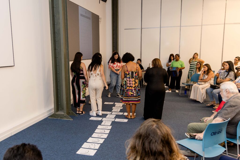 Para aproximar o debate da realidade escolar, as professoras Morgana Maria Pessoa Soares, da Escola Municipal Orsina da Fonseca (conheça o projeto), e Cristina Oliveira Carneiro, do GET Osmar Paiva Camelo (conheça o projeto), compartilharam experiências desenvolvidas junto ao programa — ambas centradas na participação ativa dos estudantes e em práticas pedagógicas articuladas ao território.